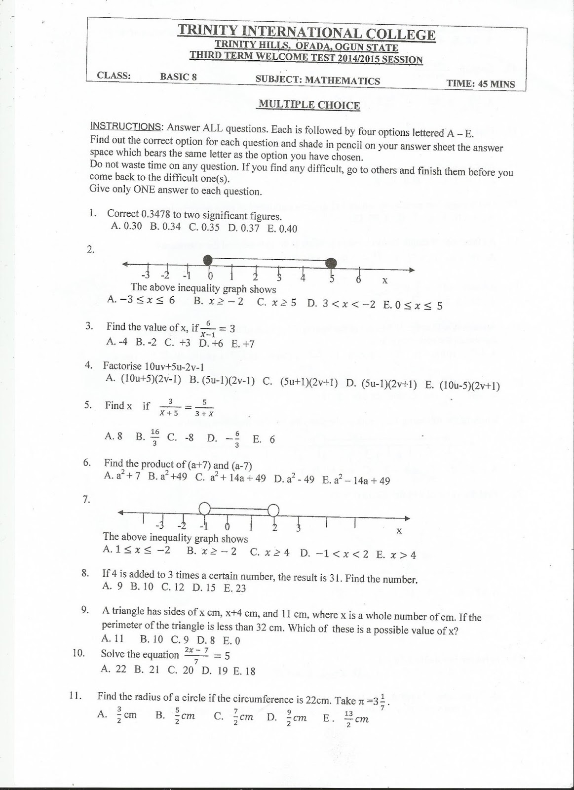 BASIC 8 MATHEMATICS